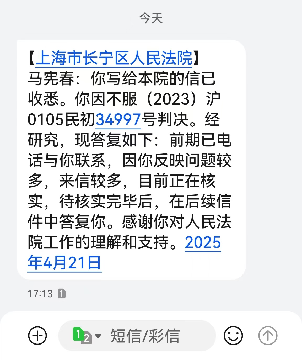 长宁区人民法院终于还是来信了